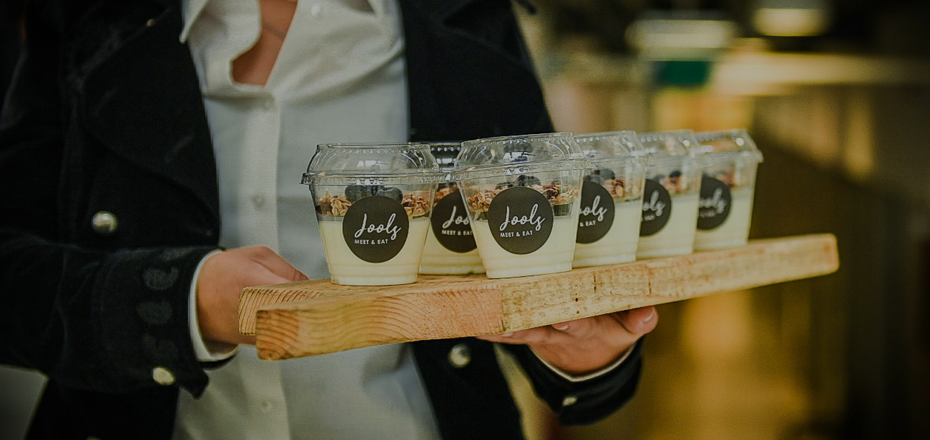 Yoghurt met granola van Jools op een plank
